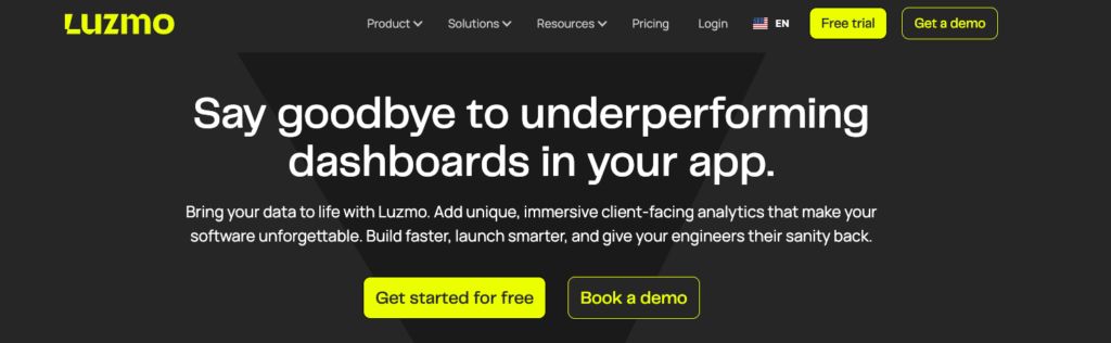 | Luzmo | Small SaaS teams needing fast deployment | Low-code Studio with AI insights | $995/month |