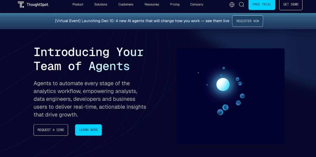 ThoughtSpot built an agentic analytics platform that specializes in AI-powered analytics and self-service capabilities.