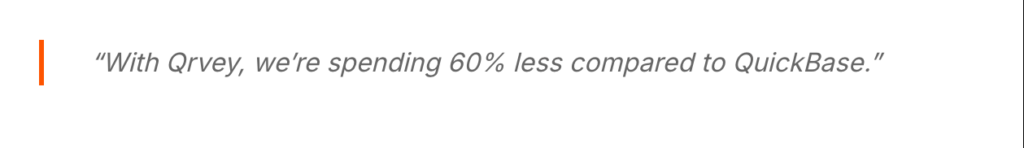 Qrvey’s built-in data lake eliminates this entire category of problems. It”s how a brand like Global K9 Protection Group achieved 60% cost savings and improved scalability by migrating to Qrvey from legacy QuickBase.