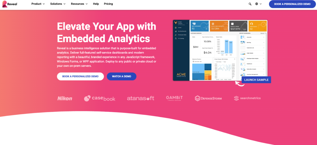 Like Qrvey, Reveal is built for SaaS companies that want to build analytics using SDK libraries and components, and hate usage-based pricing surprises.