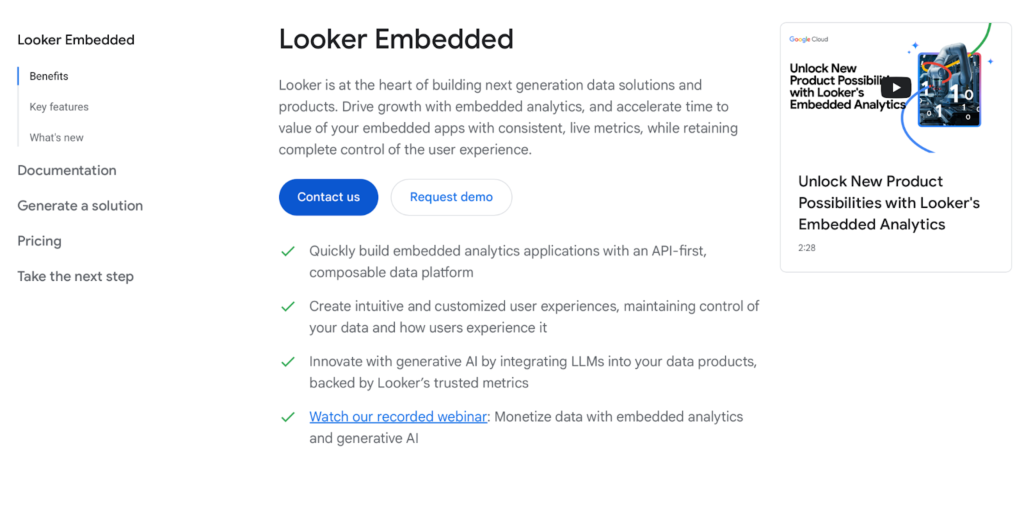 Looker offers an “Embed” edition for the embedded analytics use case. As usage grows, teams usually feel the complexity first around query limits, API usage, and how those interact with user-based licensing.